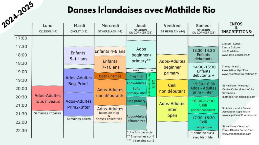 âïž Voici le planning des cours donnĂ©s par Mathilde pour la saison 2024/2025 :